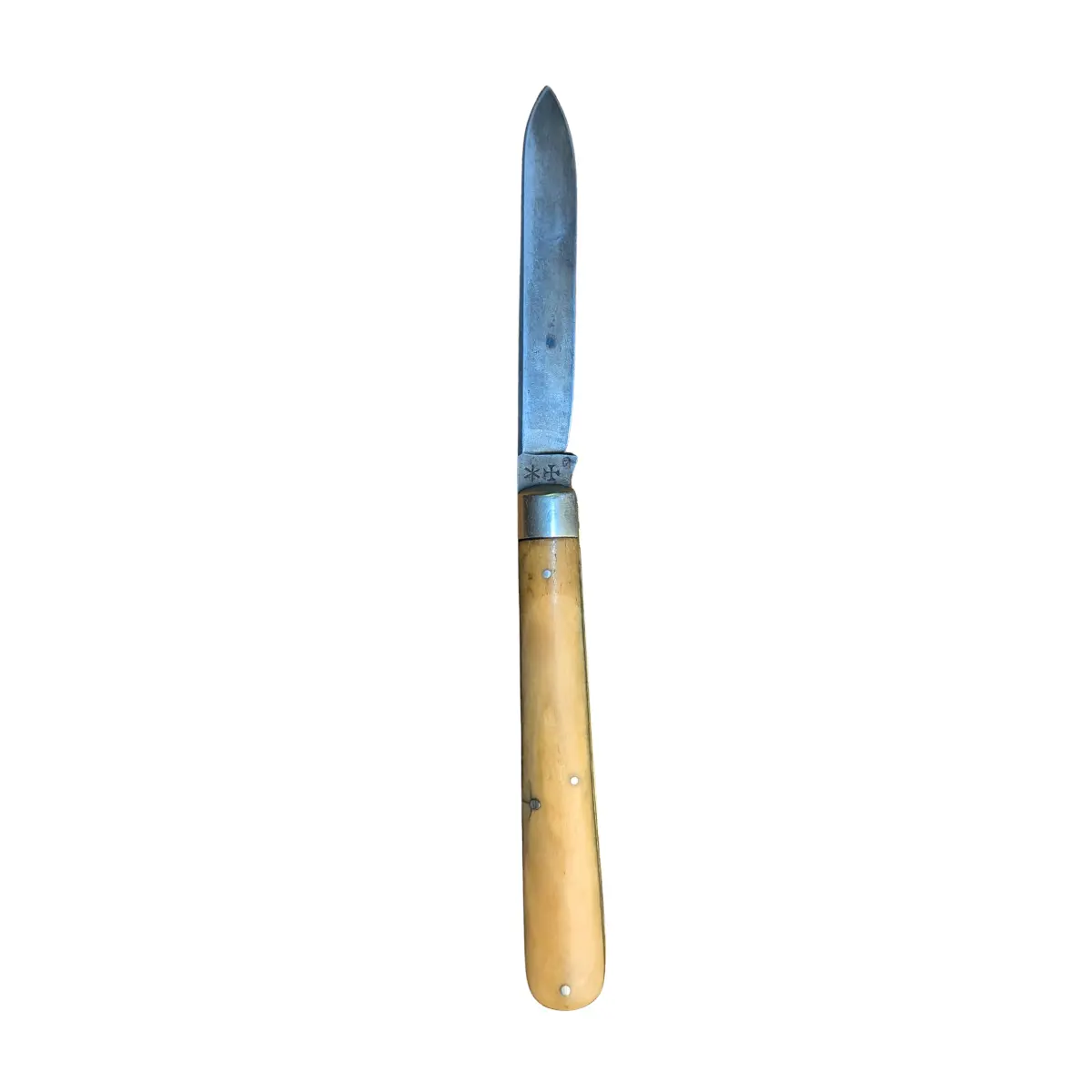 The handle appears to be natural bone, secured with metal pins. The bone has aged beautifully, developing a warm tone.