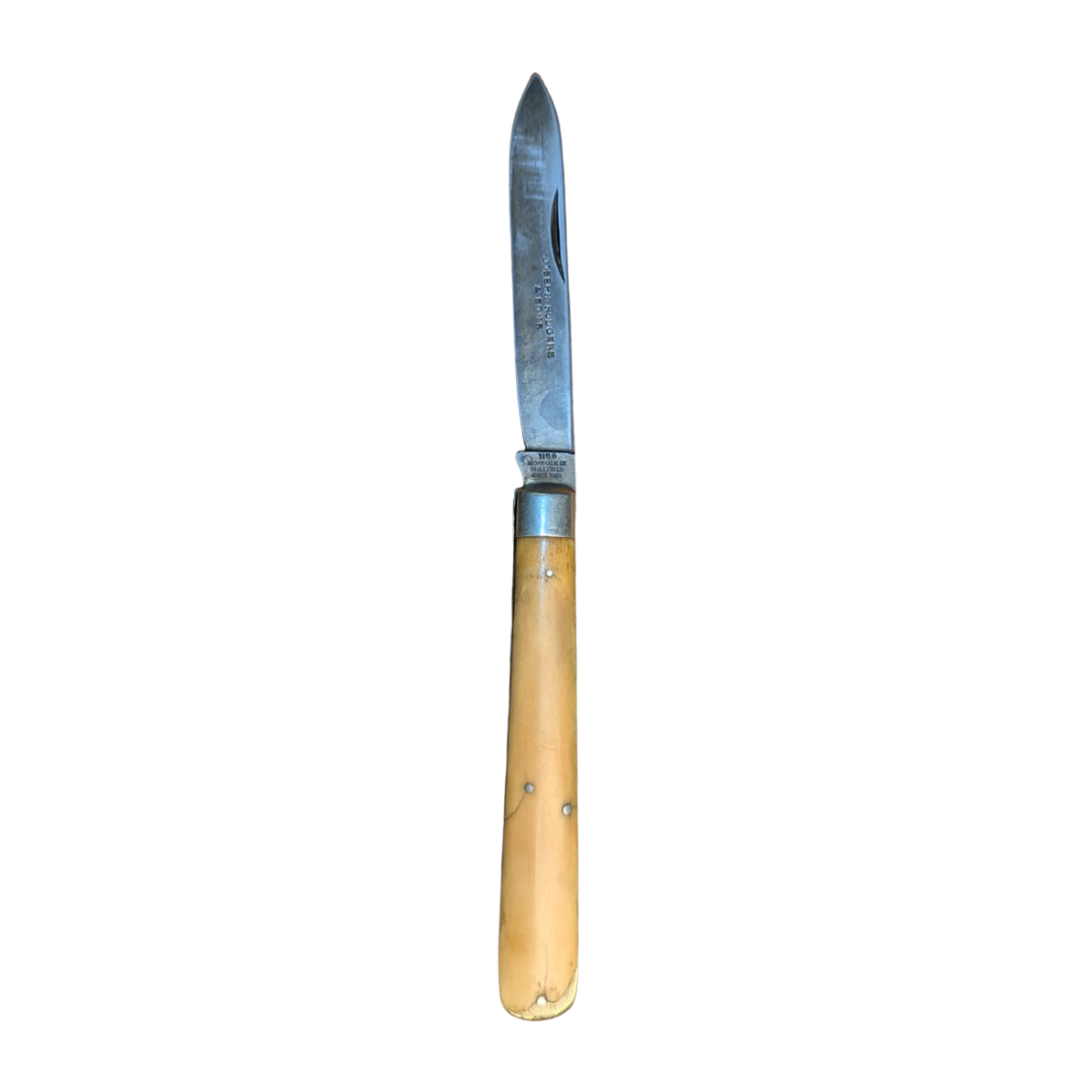 This knife is sold in its original Antique condition. No heavy restoration has been done. Surface marks, patina, and minor handle wear are part of its authenticity and history. Please review all images carefully — they form part of the description.