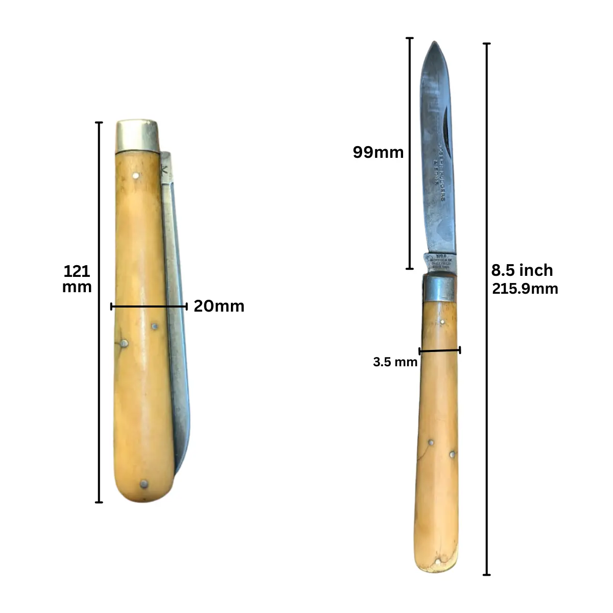 The blade is clearly stamped “Joseph Rodgers & Sons” and “Norfolk St, Sheffield, England”, confirming its genuine English origin. This knife is not a modern reproduction — it is a true antique piece, suitable for collectors, antique knife enthusiasts, and traditional tool lovers.