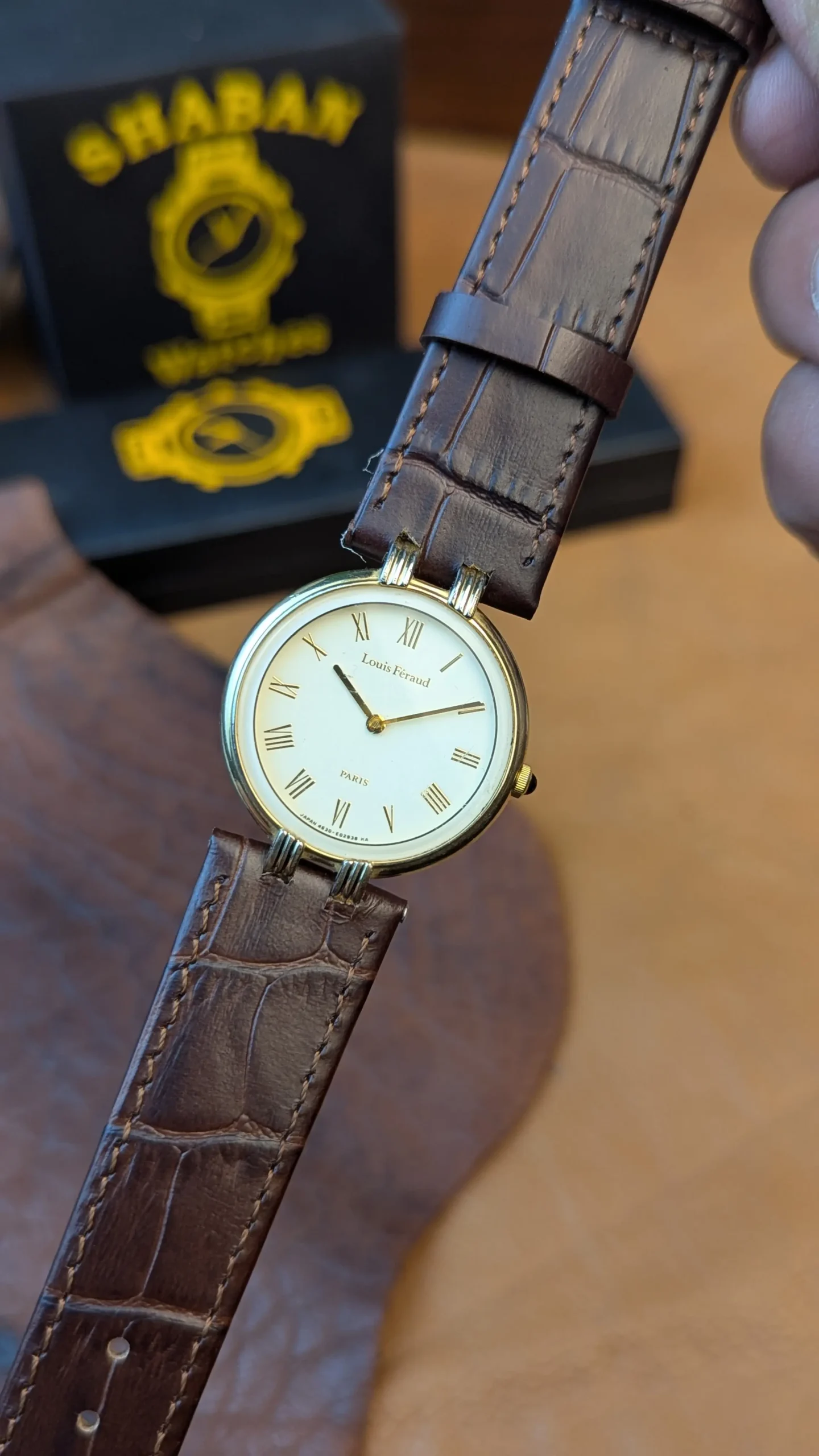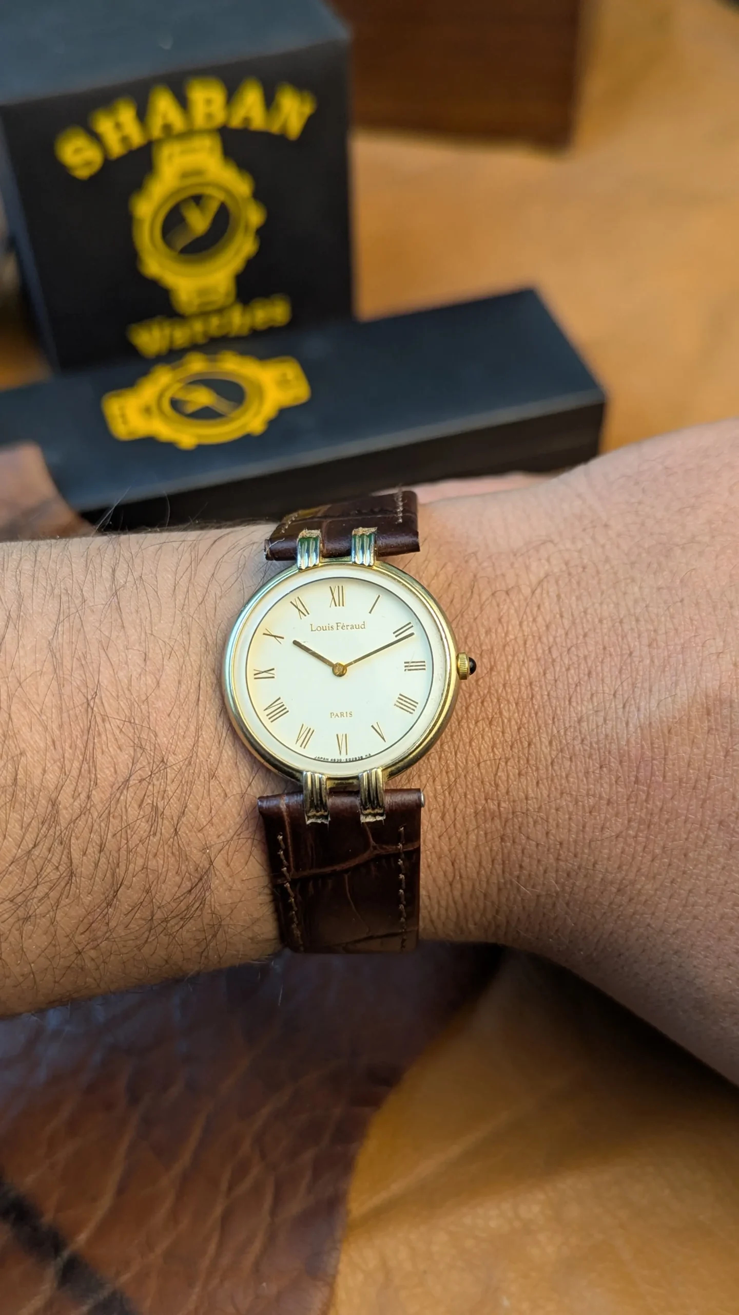 It comes fitted with a brown genuine leather strap, providing comfort and a premium feel on the wrist. The slim case profile makes it lightweight and elegant, perfect for formal events, office wear, or vintage styling.