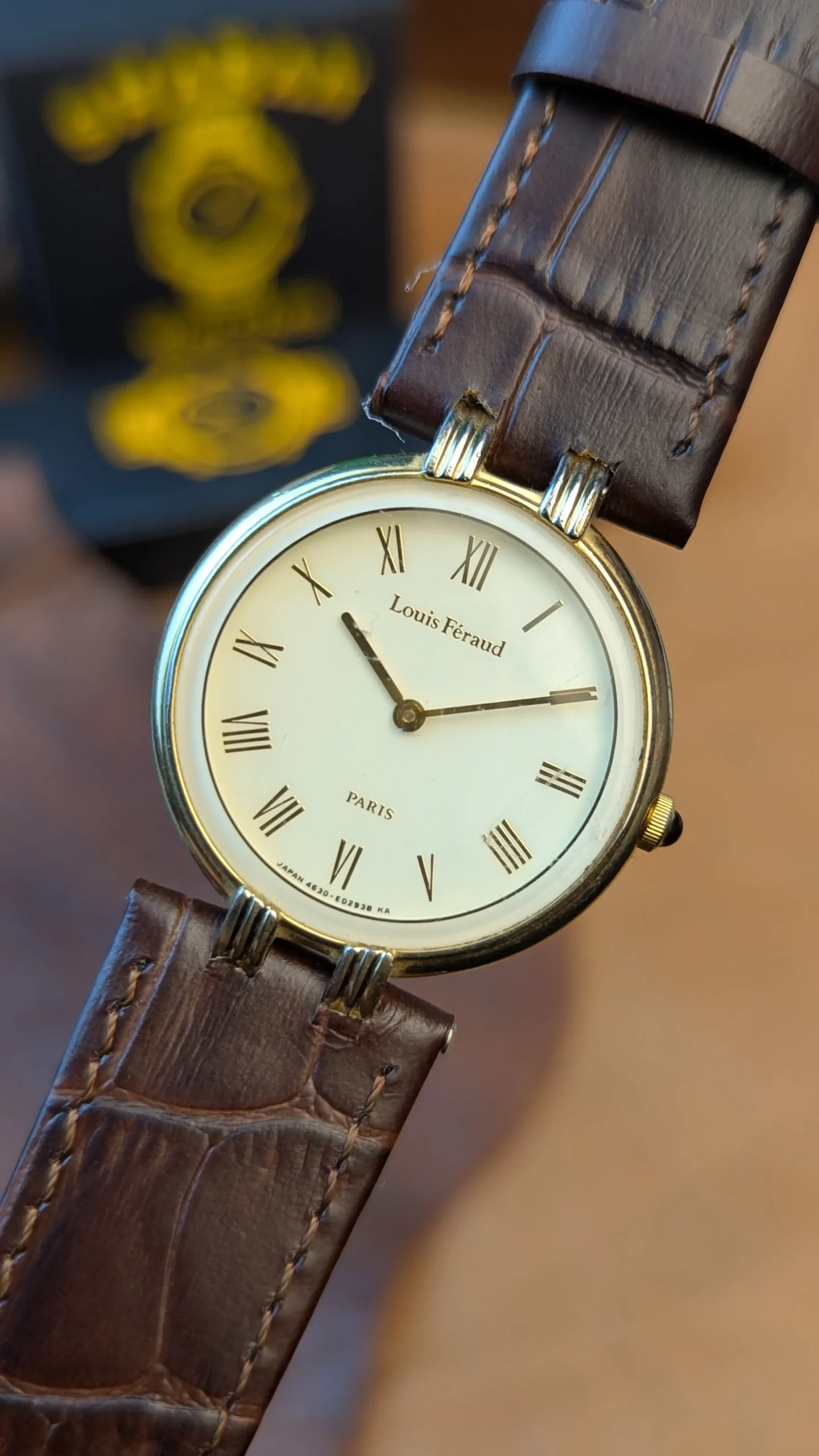 This Louis Féraud Paris Gold Tone Watch is a timeless and elegant dress watch designed for classic style lovers. With its slim gold-tone case and clean white dial, it offers a refined, sophisticated look suitable for both formal and everyday wear.