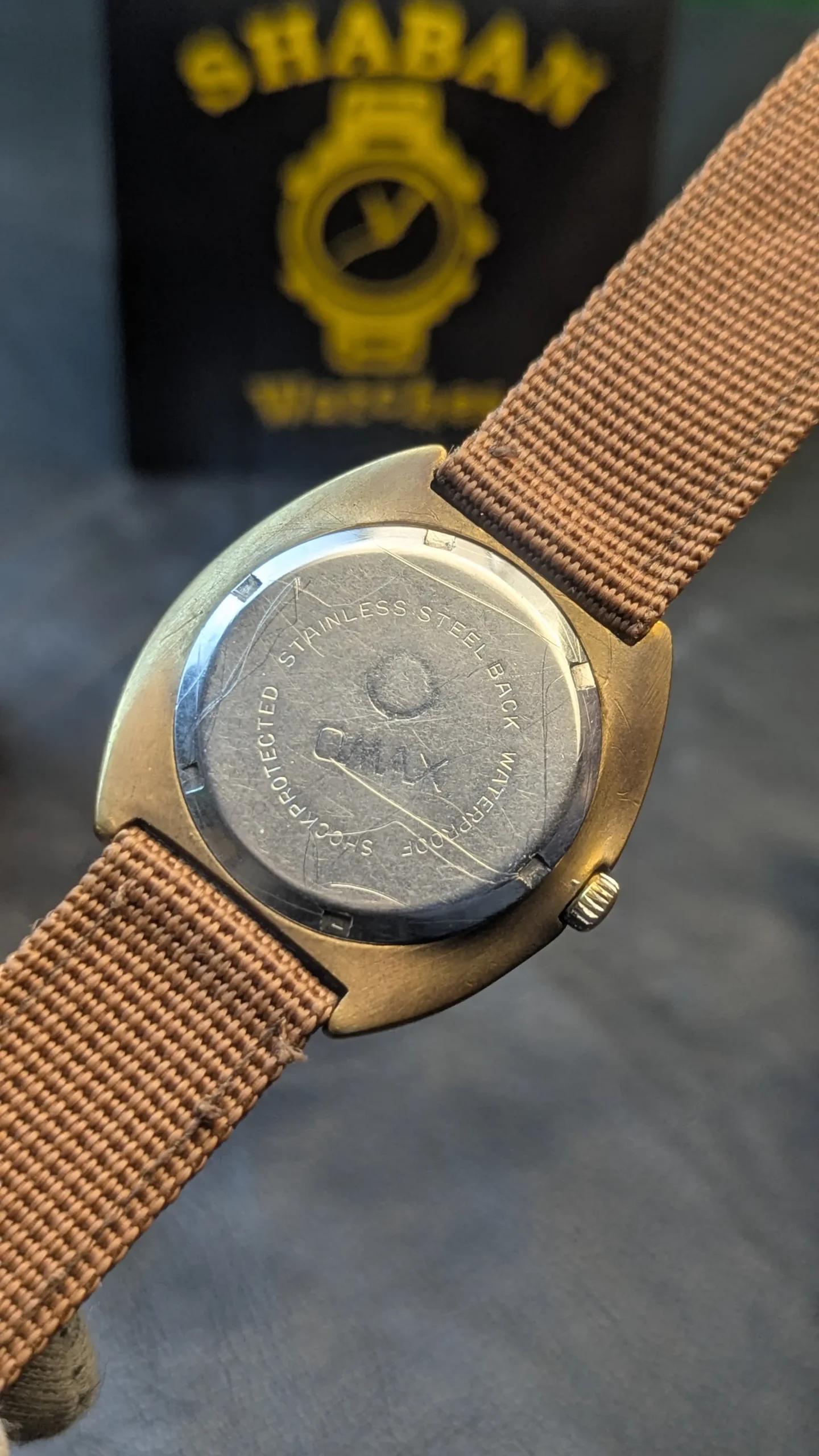 The case back is marked stainless steel back and shock protected, reinforcing durability and everyday usability. While the watch offers basic water resistance, it should be treated with care due to its age and mechanical nature.