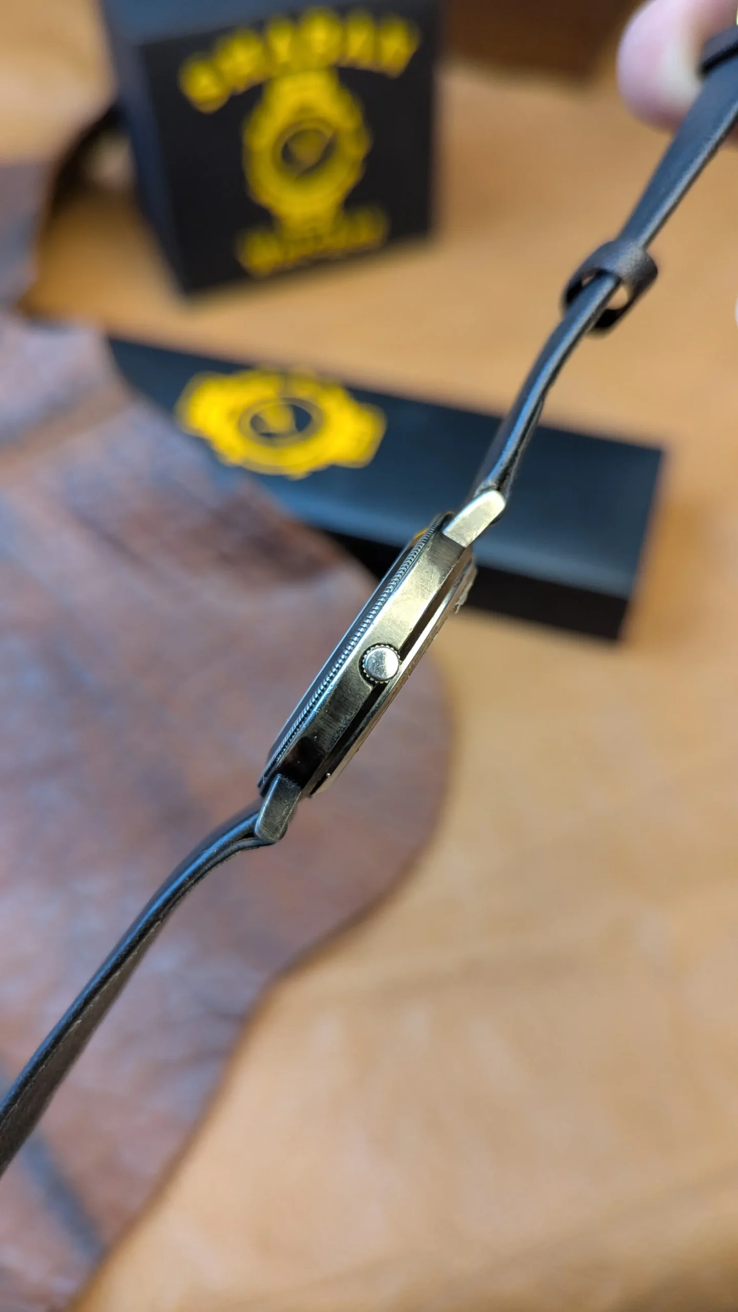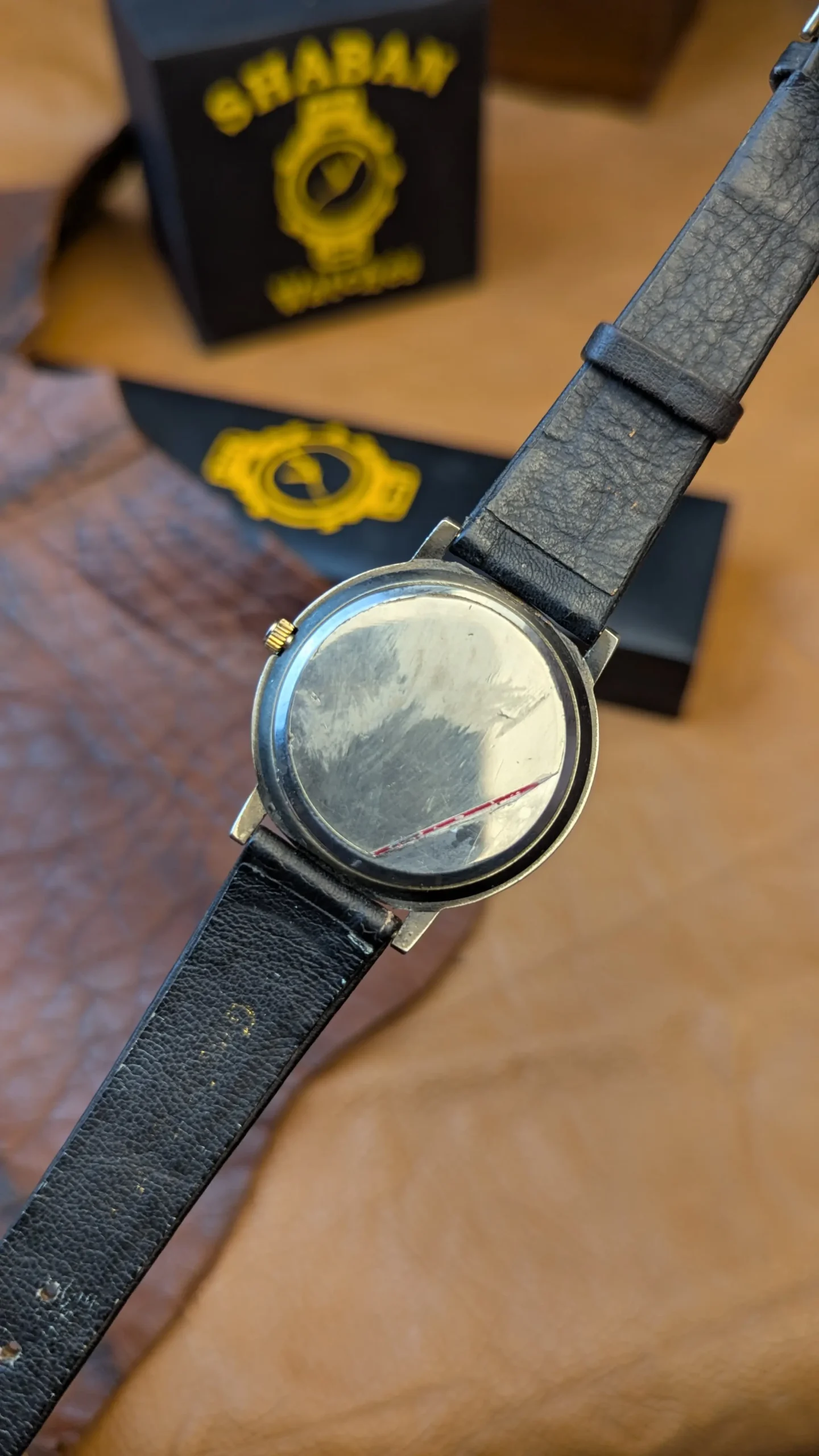 • Leather strap shows light wear