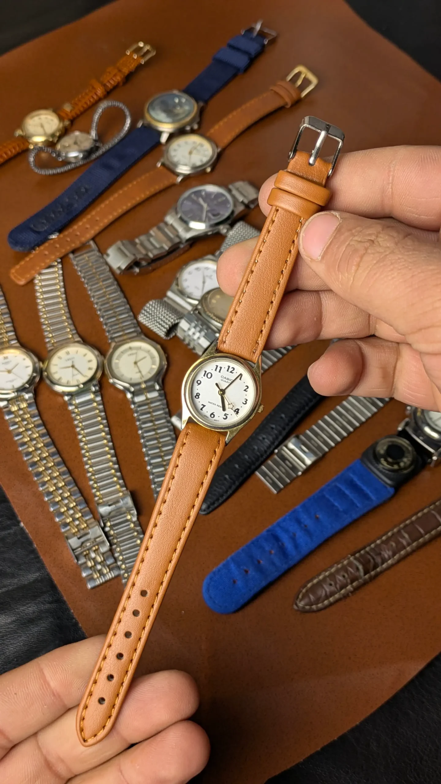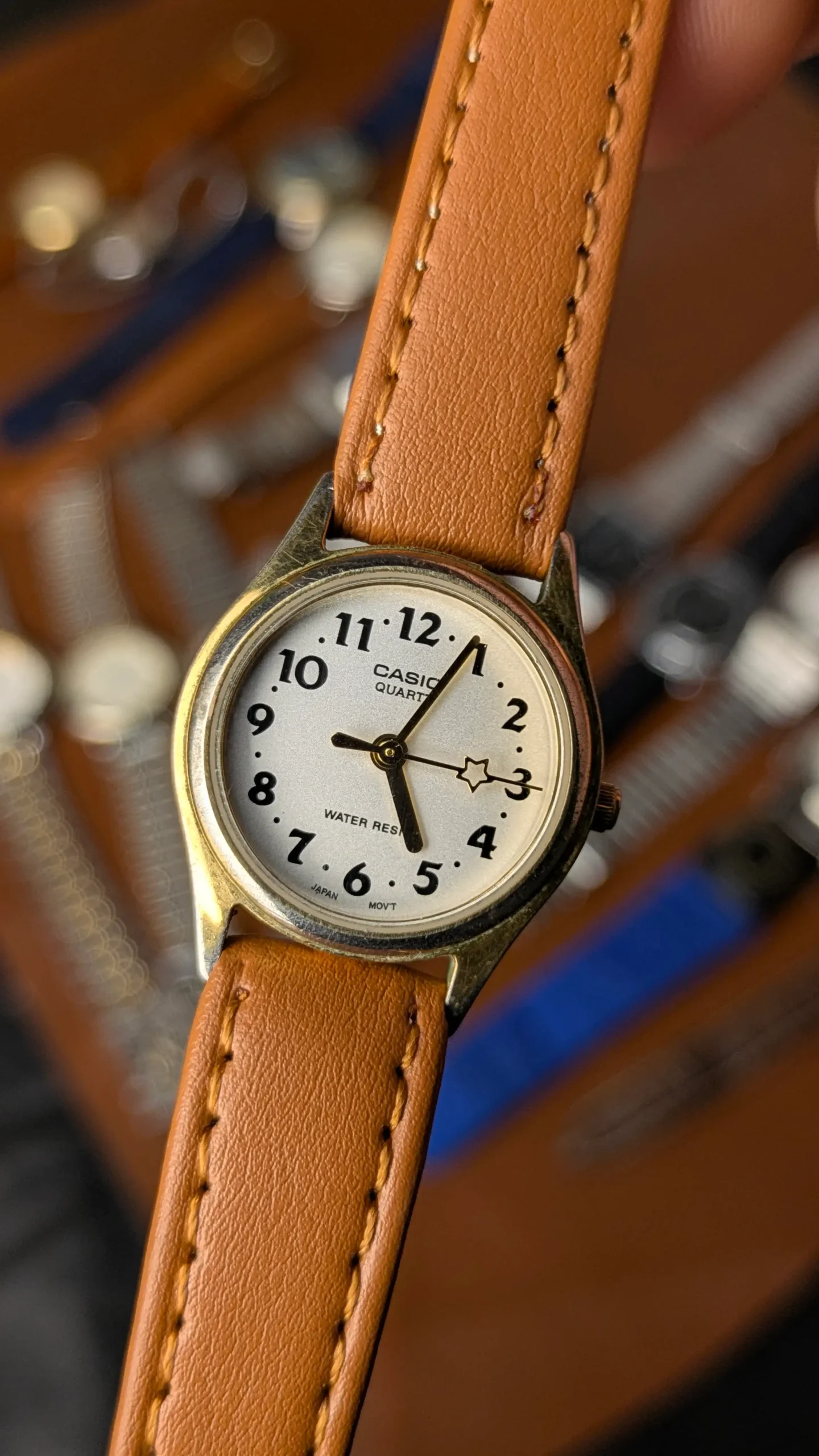 The clean white dial with bold Arabic numerals delivers excellent readability while preserving a minimalist vintage aesthetic. Powered by a reliable Japanese quartz movement, this watch ensures precise timekeeping with the trusted performance Casio is known for. The elegant gold-tone case enhances its vintage charm, while the soft brown leather strap adds warmth and sophistication to the overall look.