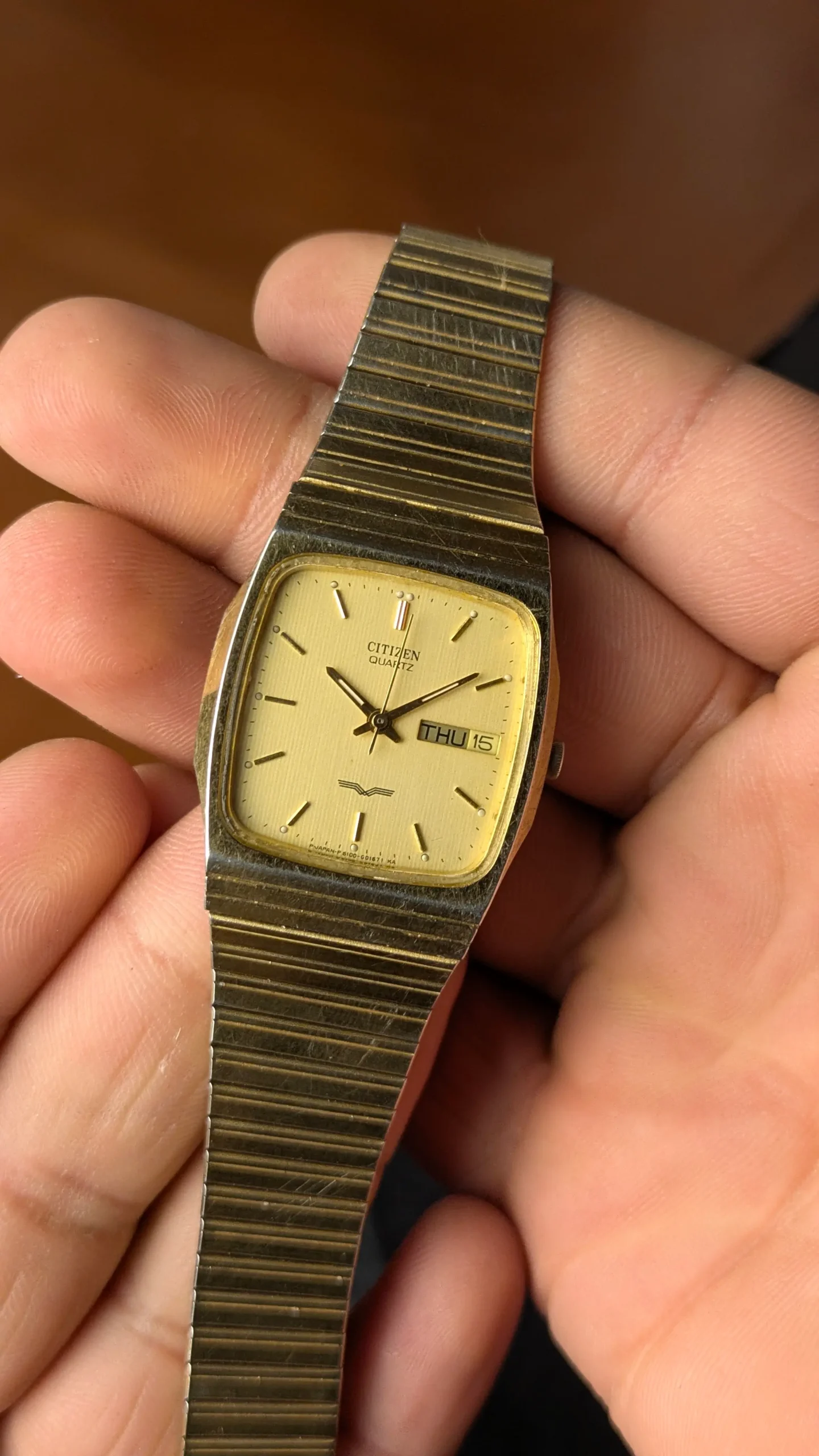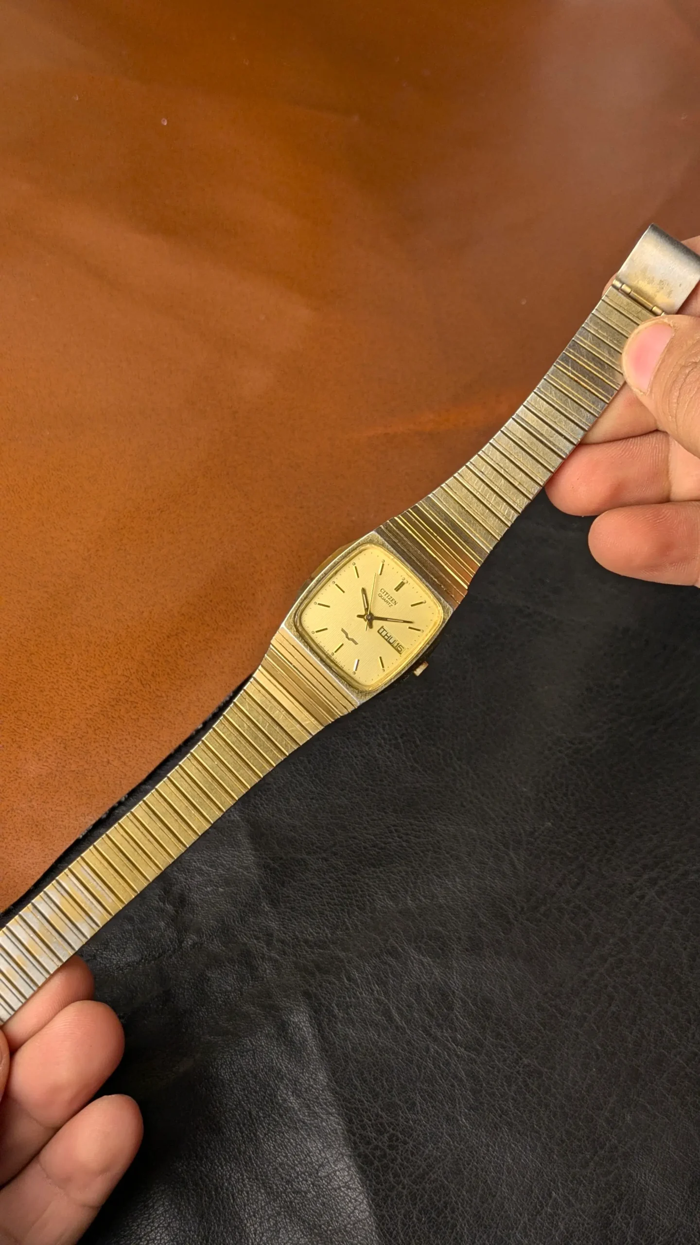 This original Citizen Quartz watch is a true vintage piece, featuring a unique square dial design with an elegant gold-tone finish. Made in Japan, this watch represents the quality and reliability that Citizen is known for worldwide.