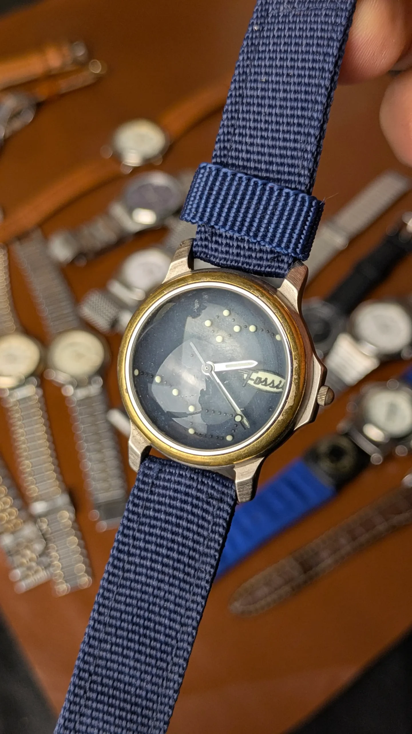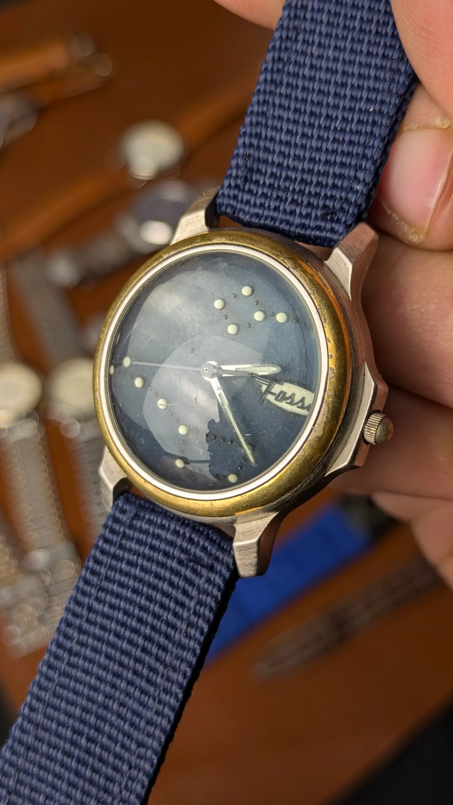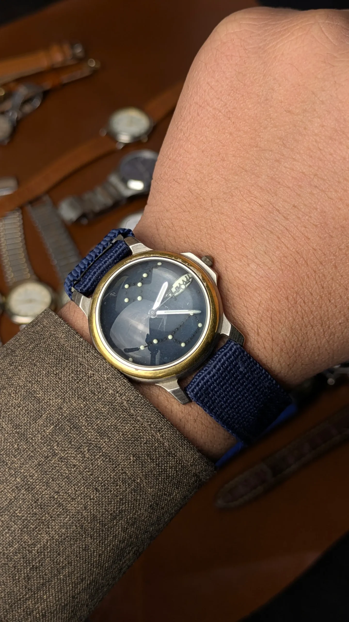 What transforms this piece into something truly wearable is the blue NATO strap. It adds a modern, casual edge to the vintage head, making it perfect for daily wear. Lightweight, breathable, and stylish—it balances the aged aesthetic perfectly.
