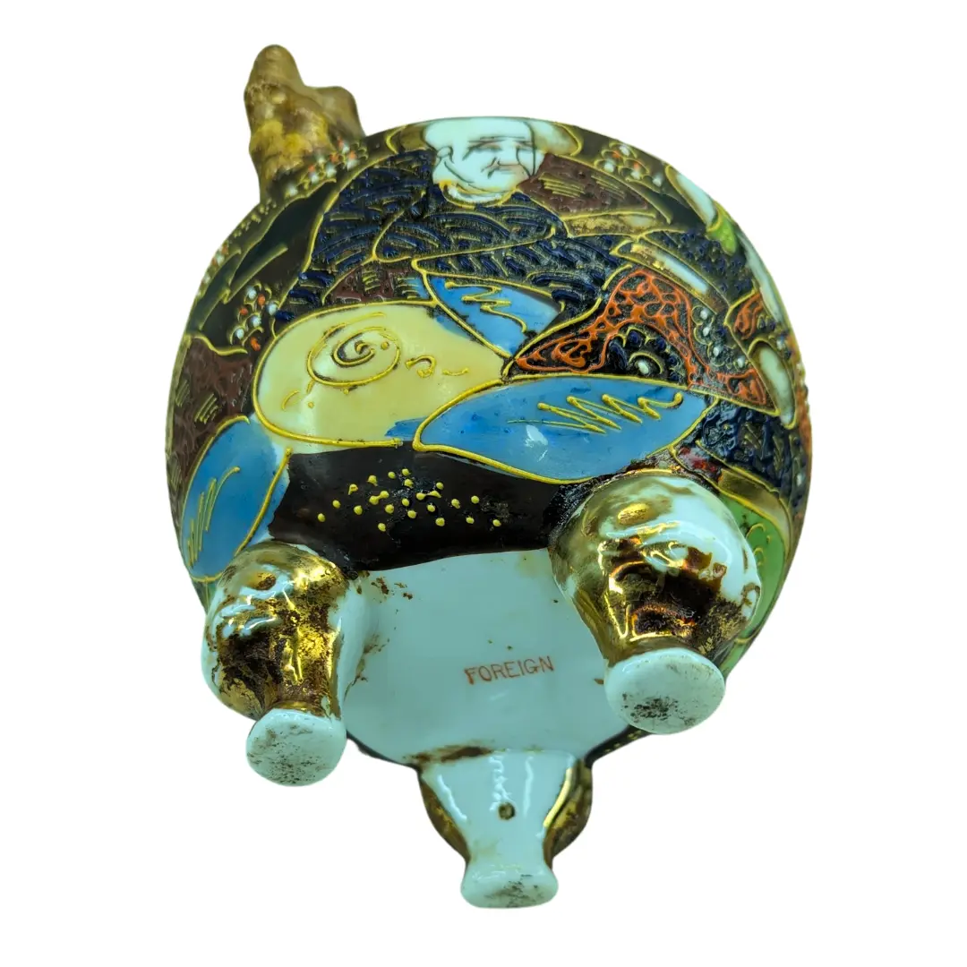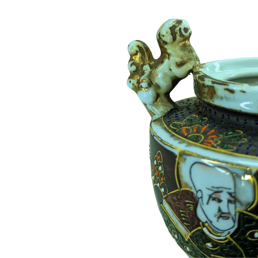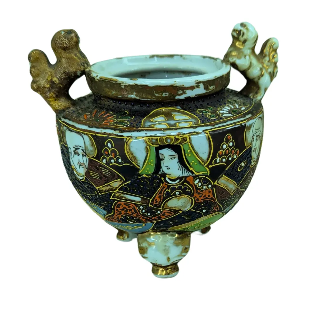 The pot stands on small decorative feet, giving it an elevated presence and making it ideal as a statement decor object. The rich color palette—combined with natural age wear—adds depth, authenticity, and charm that modern reproductions cannot replicate. Kutani Wear