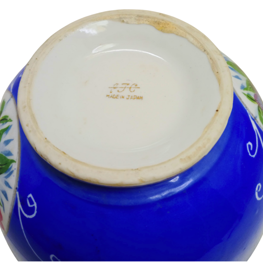 Add timeless charm to your home with this vintage Japanese porcelain bowl, beautifully finished in a deep cobalt blue color with a delicate hand-painted floral medallion at the center. Marked “Made in Japan” on the base, this piece reflects the fine craftsmanship and artistic tradition Japan is known for.