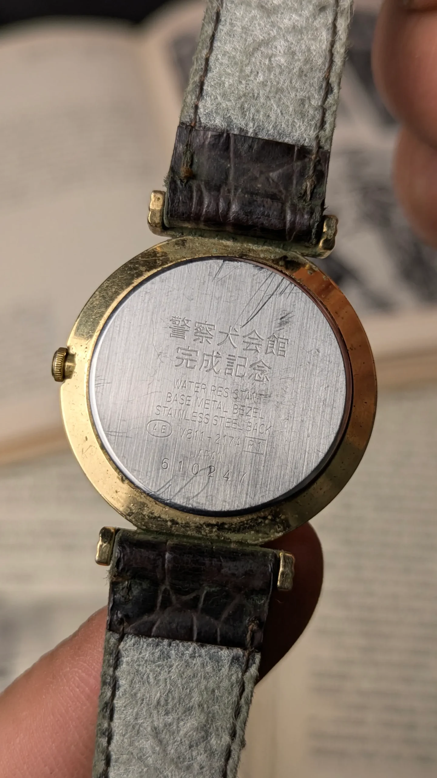 Overall, this piece represents a distinctive vintage Japanese quartz dress watch with commemorative engraving and classic Roman bezel styling.