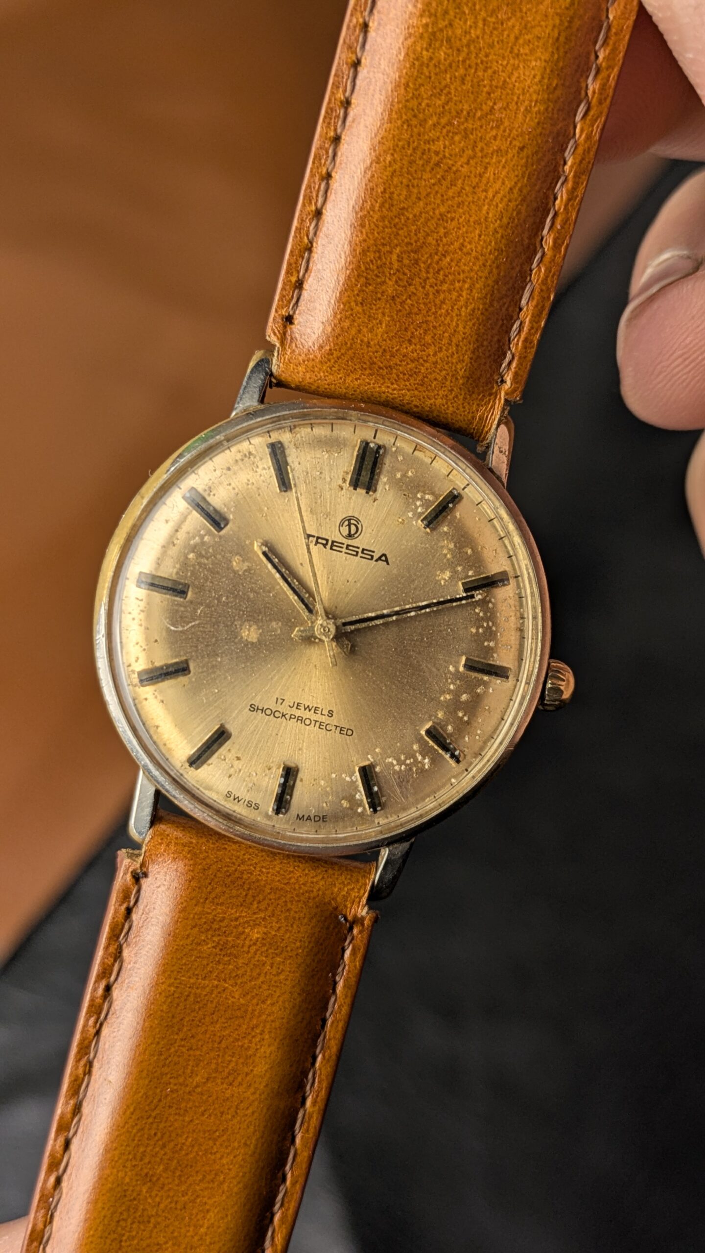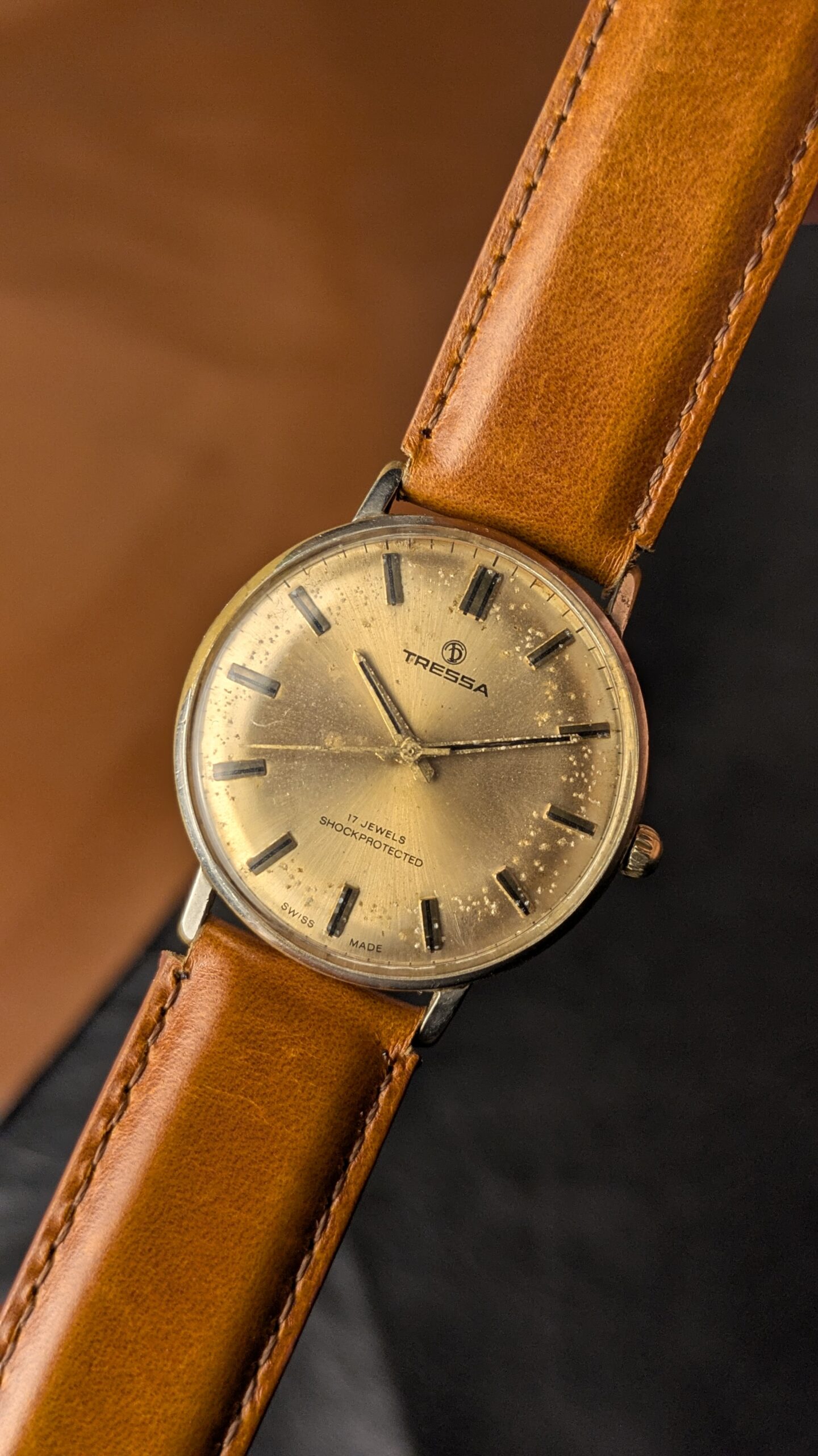 This vintage Tressa Swiss watch is a beautiful example of classic European watchmaking, designed with simplicity, elegance, and durability in mind. With its 33mm case size, this watch offers a refined vintage look perfect for collectors and everyday wear.