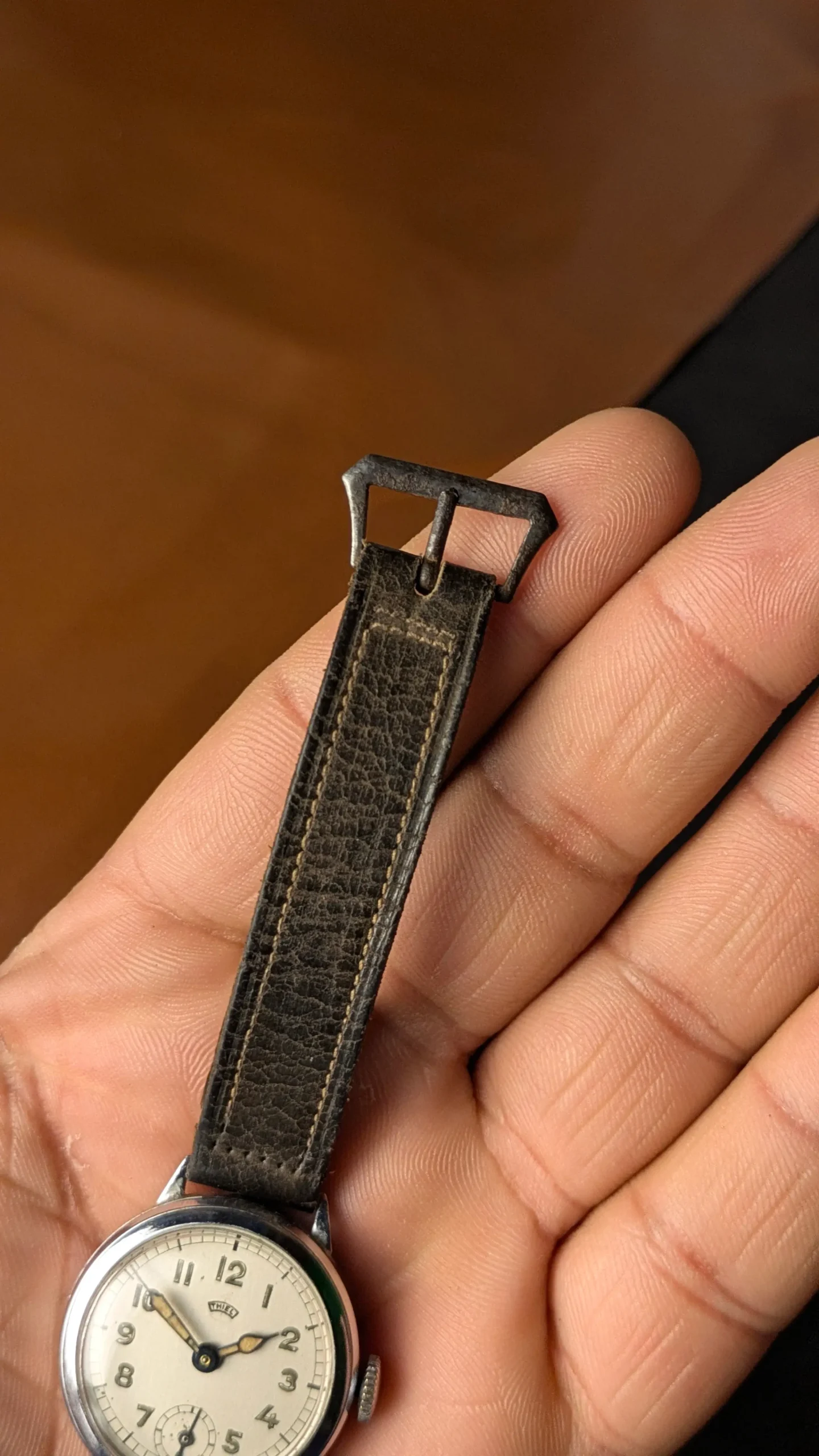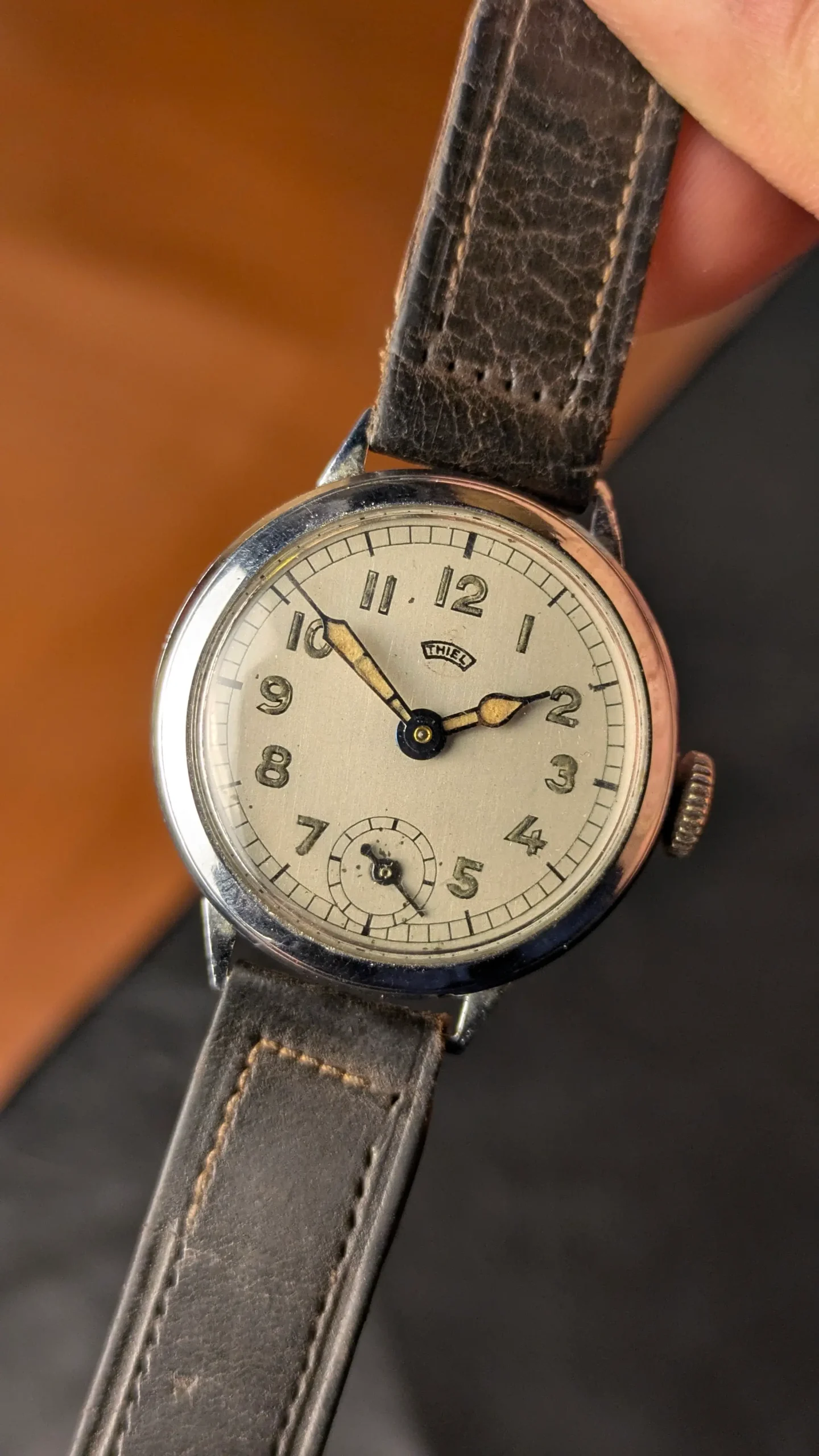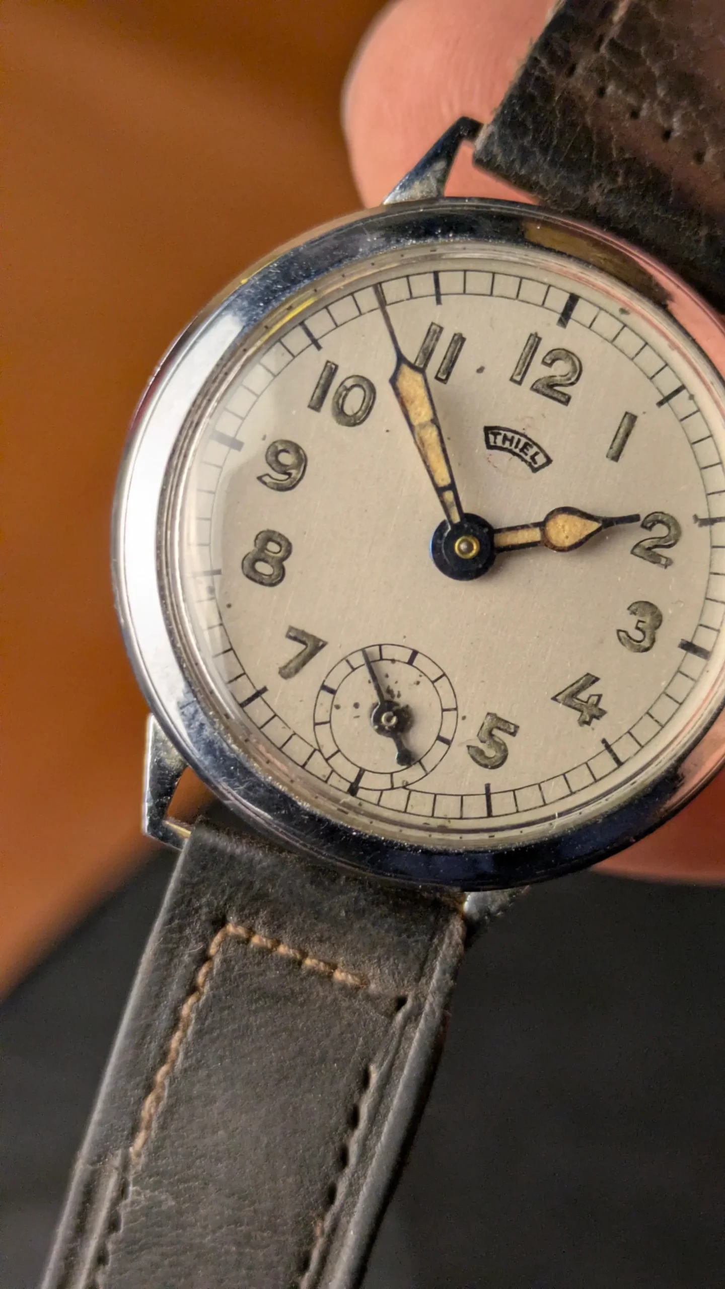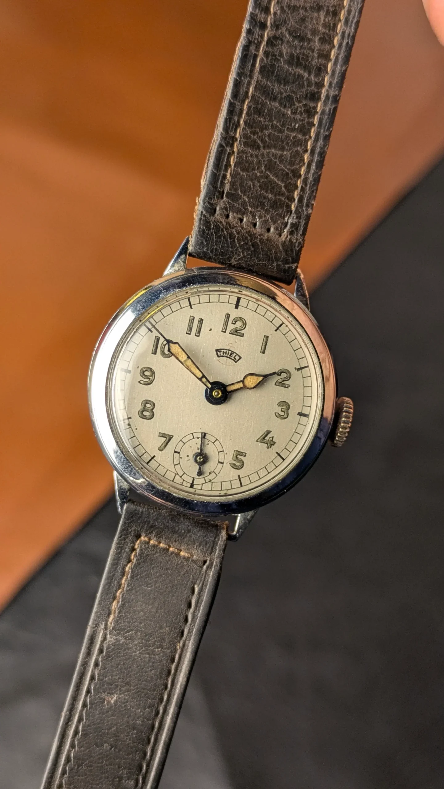 WWII-era craftsmanship at its finest. This THIEL mechanical watch is believed to originate from the 1940s World War II period, making it a rare piece of wearable history.